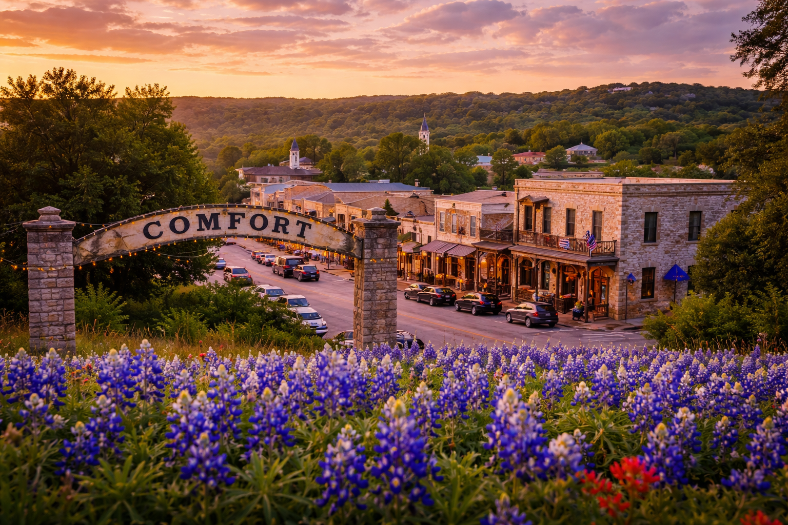 The drive from Boerne toward Comfort on Highway 27, then north on Highway 16 toward Kerrville, offers gorgeous rolling meadow scenery in wildflower season. Stop in Comfort for lunch and a stroll through the antique shops — a perfect slow-travel Hill Country morning.