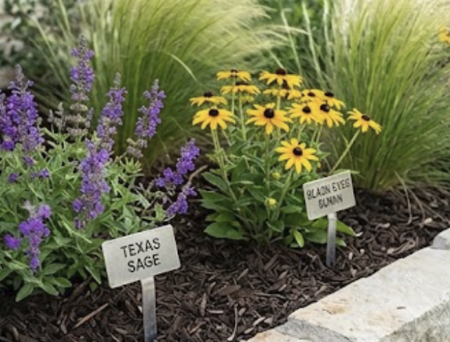 - Plant warm-season natives: Texas sage, black-eyed Susan, esperanza, salvia, and Mexican feathergrass